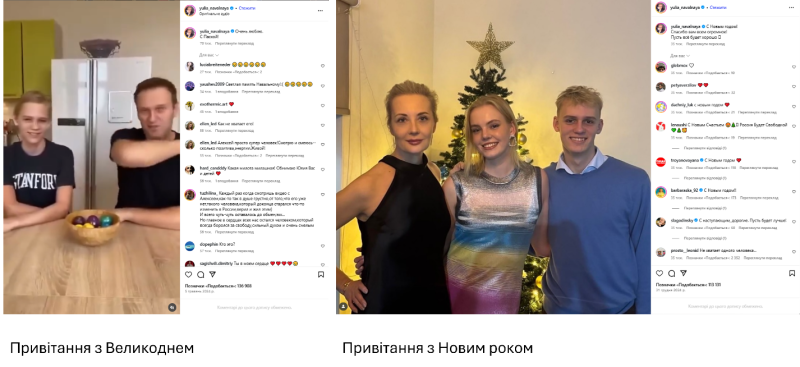 Popular posts in 2025 include the anniversary of Navalny’s death and her son’s birthday.