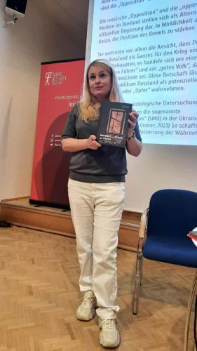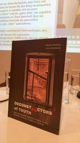 Журналістка представила аудиторії книгу «Деконструктори правди», видану Інститутом демократії імені Пилипа Орлика. Видання присвячене так званій російській опозиції, яка, за словами пані Ірини, також є одним із потужних інструментів російського впливу.
